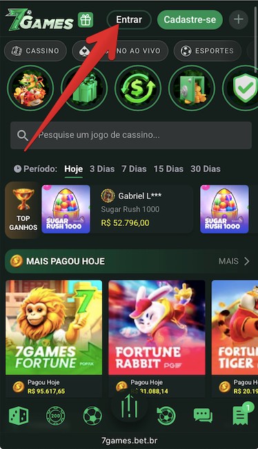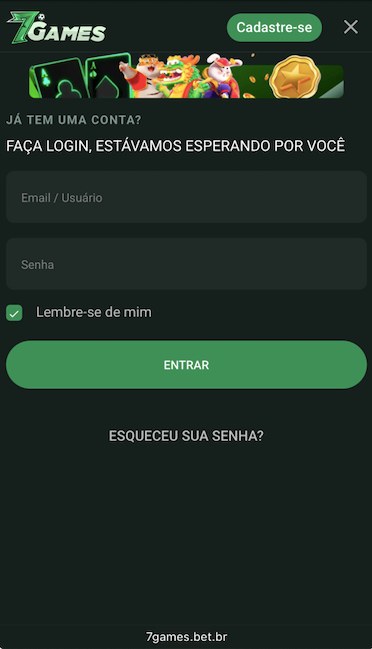 - Toque em “Entrar” para concluir o 7 Games Bet login.