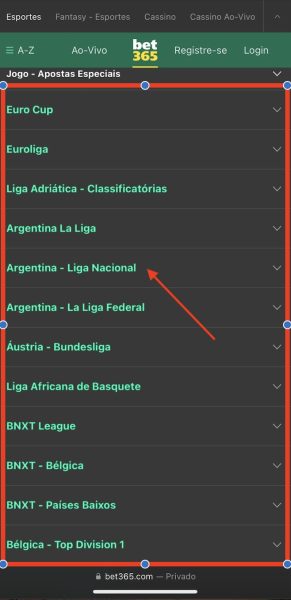 - Depois de clicar no esporte, você vai procurar pelo país da competição que quer apostar e em seguida selecionar o campeonato escolhido;