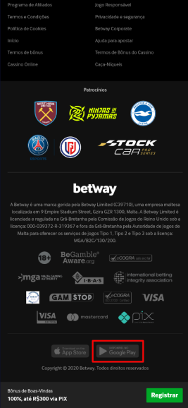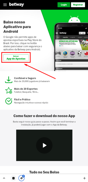 Por enquanto, só é possível baixar e instalar o Betway Sports app diretamente do site da casa de apostas Betway. Diferentemente de outros apps de sites de jogos, o aplicativo Betway não é encontrado na Play Store, já que o Google não permite o download de apps de mercados de apostas em sua loja do Brasil.
