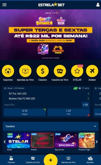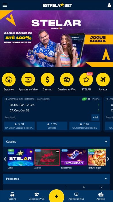 No App da Estrela Bet tem a opção de apostas ao vivo na maior parte das modalidades esportivas. A página exibe todos os eventos no link “Apostas ao Vivo”. Todos os jogos ao vivo, dos diversos esportes, que estiverem acontecendo no momento serão mostrados nesta partem depois que você clicar.