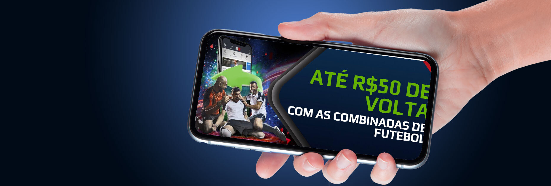 - Faça uma aposta combinada com um mínimo de 5 seleções de futebol, com chances de mínimas de 1.2 por seleção, e receba de volta 100% de sua aposta até R$ 50 se uma de suas seleções perder.